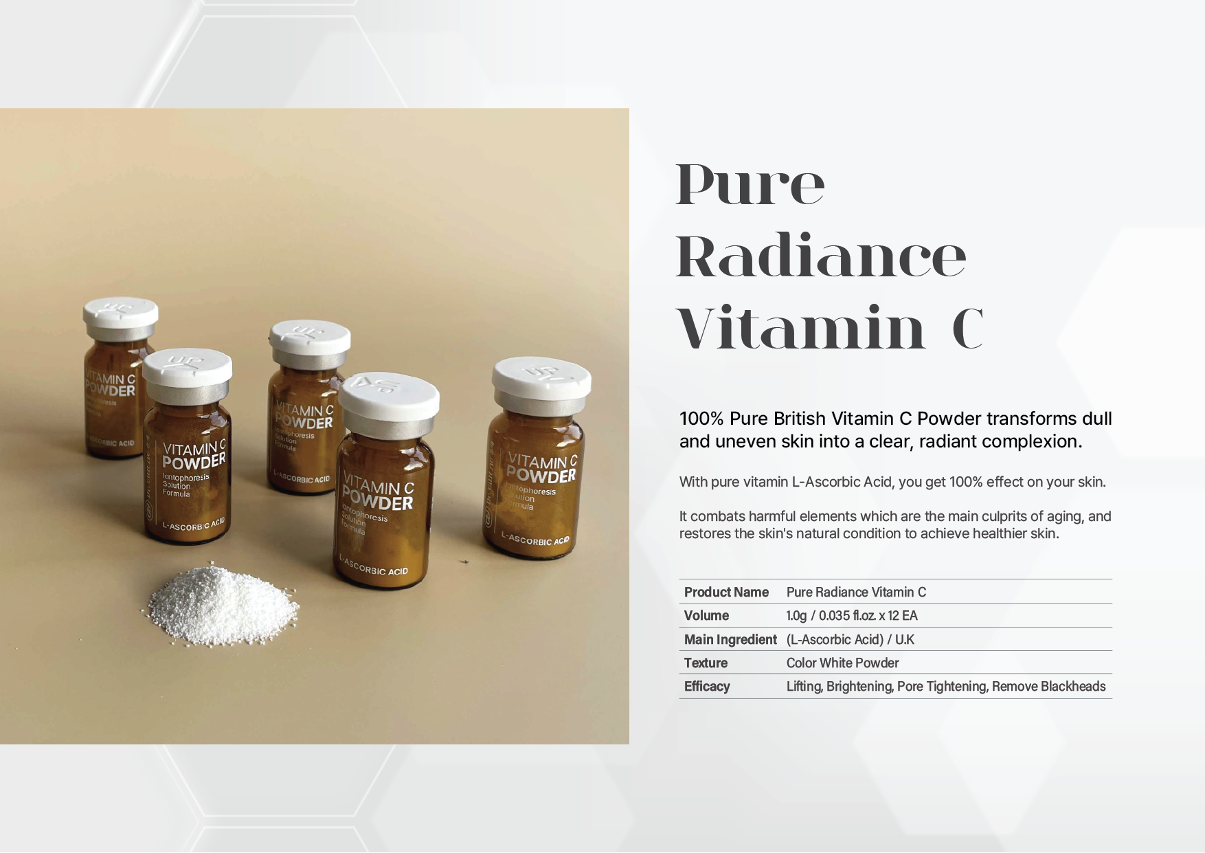 - 12 vials of Vitamin C Powder (1g each)